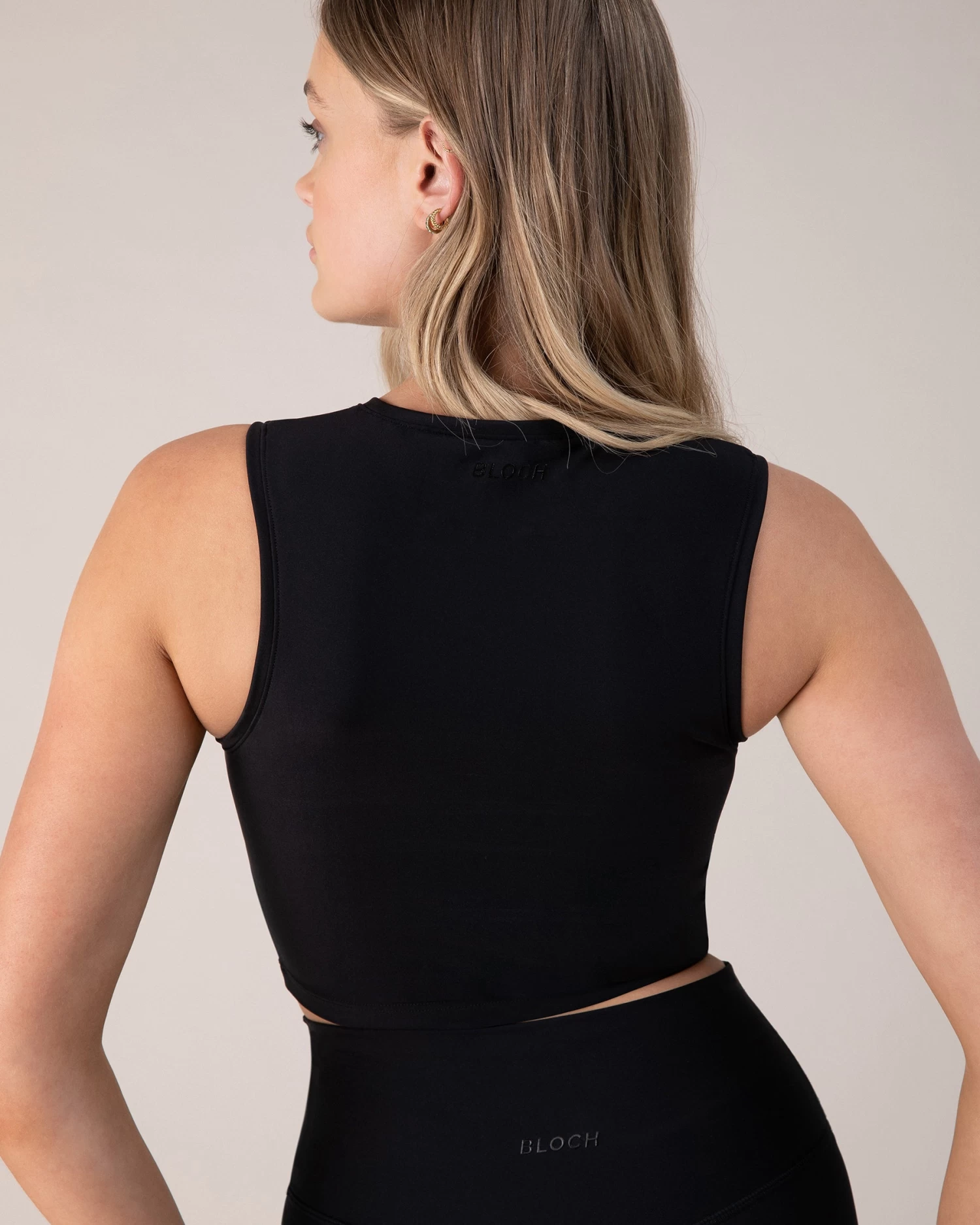 Sublimely scultping, supremely sleek. This simply elegant crop top is crafted in our signature, high-compression BLOCHsculpt™ fabric for a seamless, airlight fit. Its high scoop neck, easy cropped length, and sleaveless style will make this top your new go-to.
