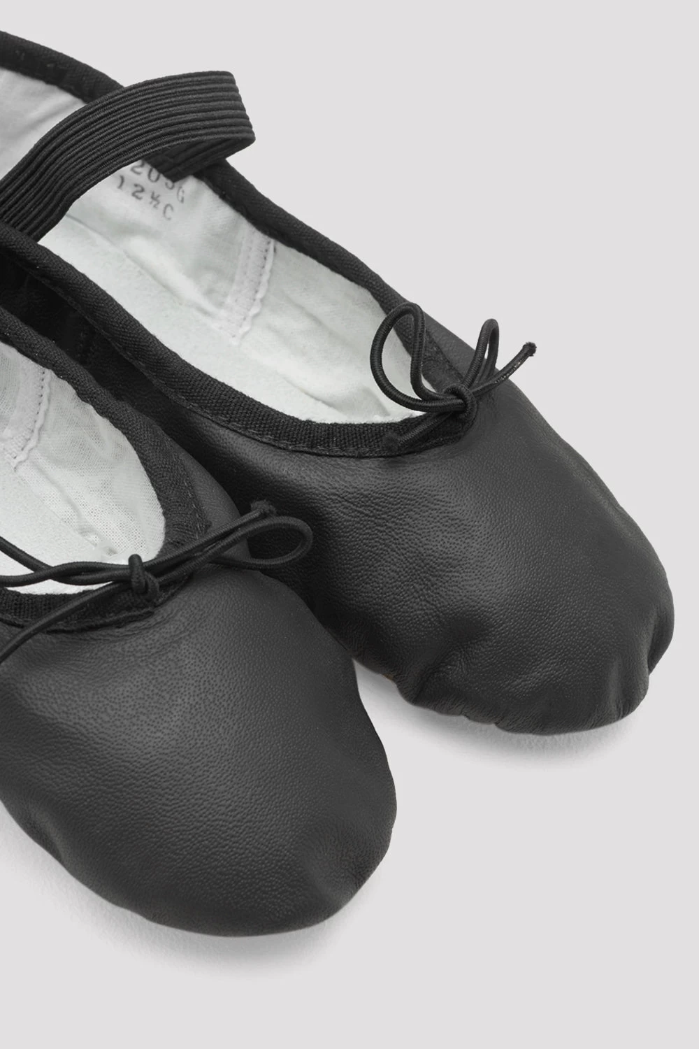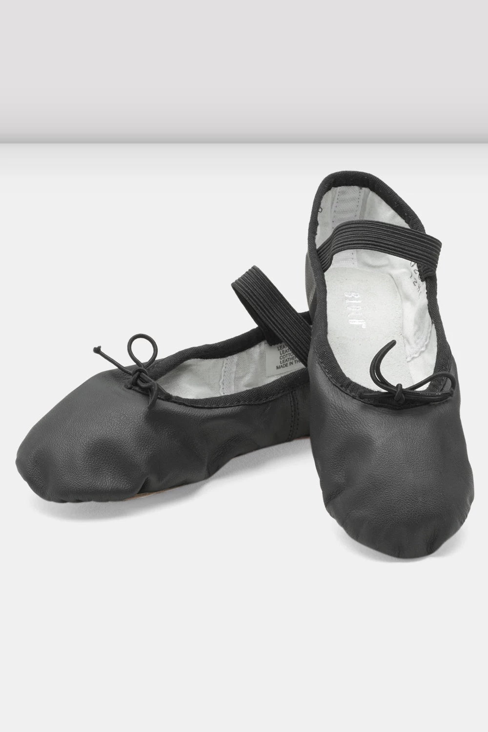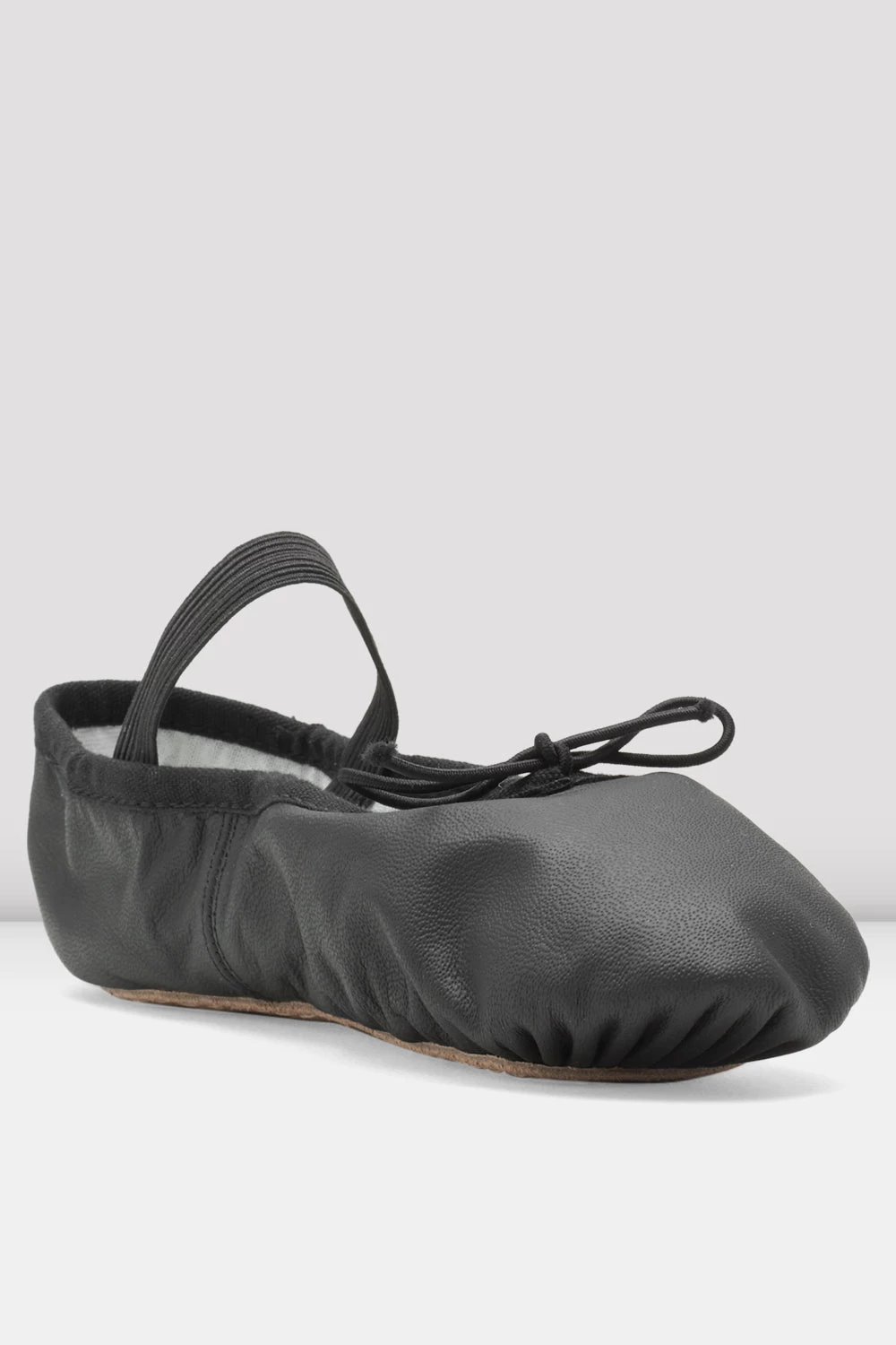 BLOCH best-seller! The Dansoft in girls sizes is a beautifully classic, introductory leather ballet flat with a tapered toe and full sole. Ideal for the young student as it features a full sole and elastic already attached over the instep for immediate wear. Crafted from BLOCH’s high-performance, luxurious leather. Our Childrens Dansoft Leather Ballet Shoes are perfect for both girls and boys and feature;