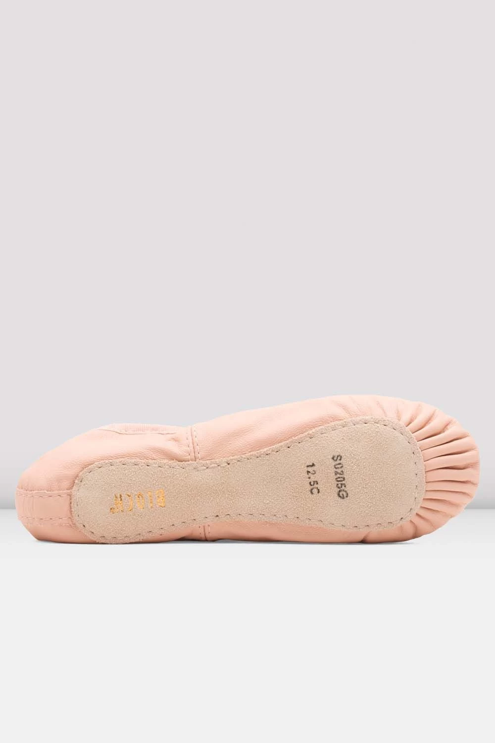 BLOCH best-seller! The Dansoft in girls sizes is a beautifully classic, introductory ballet flat with a tapered toe and full sole. Ideal for the young student as it features a full sole and elastic already attached over the instep for immediate wear. Crafted from BLOCH’s high-performance, luxurious leather. Our Childrens Dancesoft Leather Ballet Shoes are perfect for both girls and boys and feature;