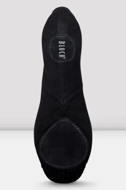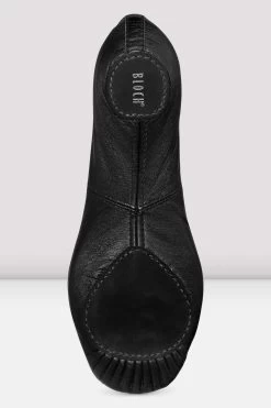 - A canvas split sole ballet shoe with elastic in place of binding and drawstring – the elastic contours to the foot, reduces pressure on the Achilles tendon and on the dorsal surface of the foot when it contacts the floor