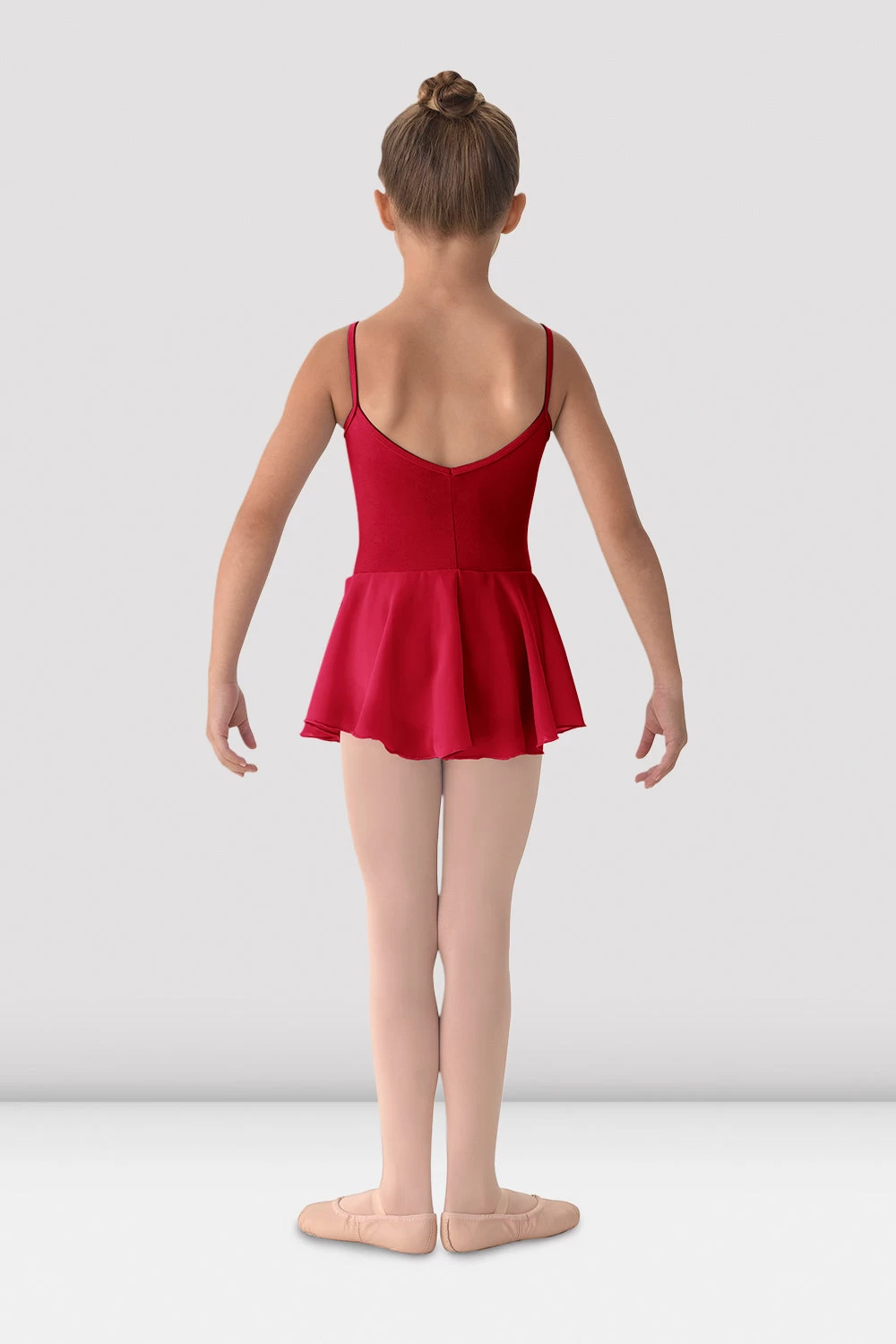 This darling camisole dress is a recital and performance favorite! A simple scoop front neckline is complemented with a V back which flatters the body and creates a beautiful line. An attached skirt falls from the hips to the upper thigh in a soft and flowing Georgette fabric.