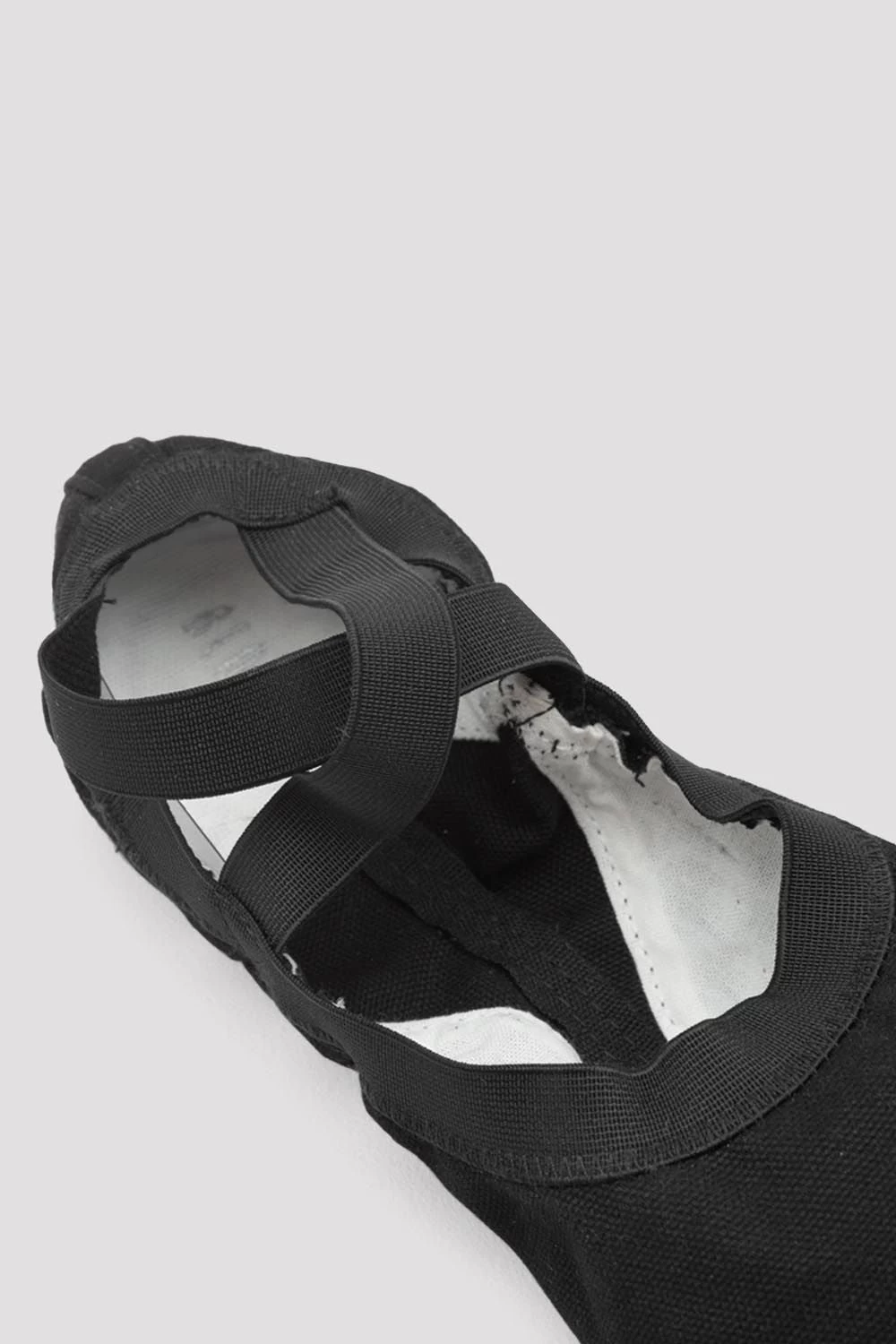 - A canvas split sole ballet at with elastic in place of binding and drawstring – the elastic contours to the foot, reduces pressure on the Achilles tendon and on the dorsal surface of the foot when it contacts the floor
