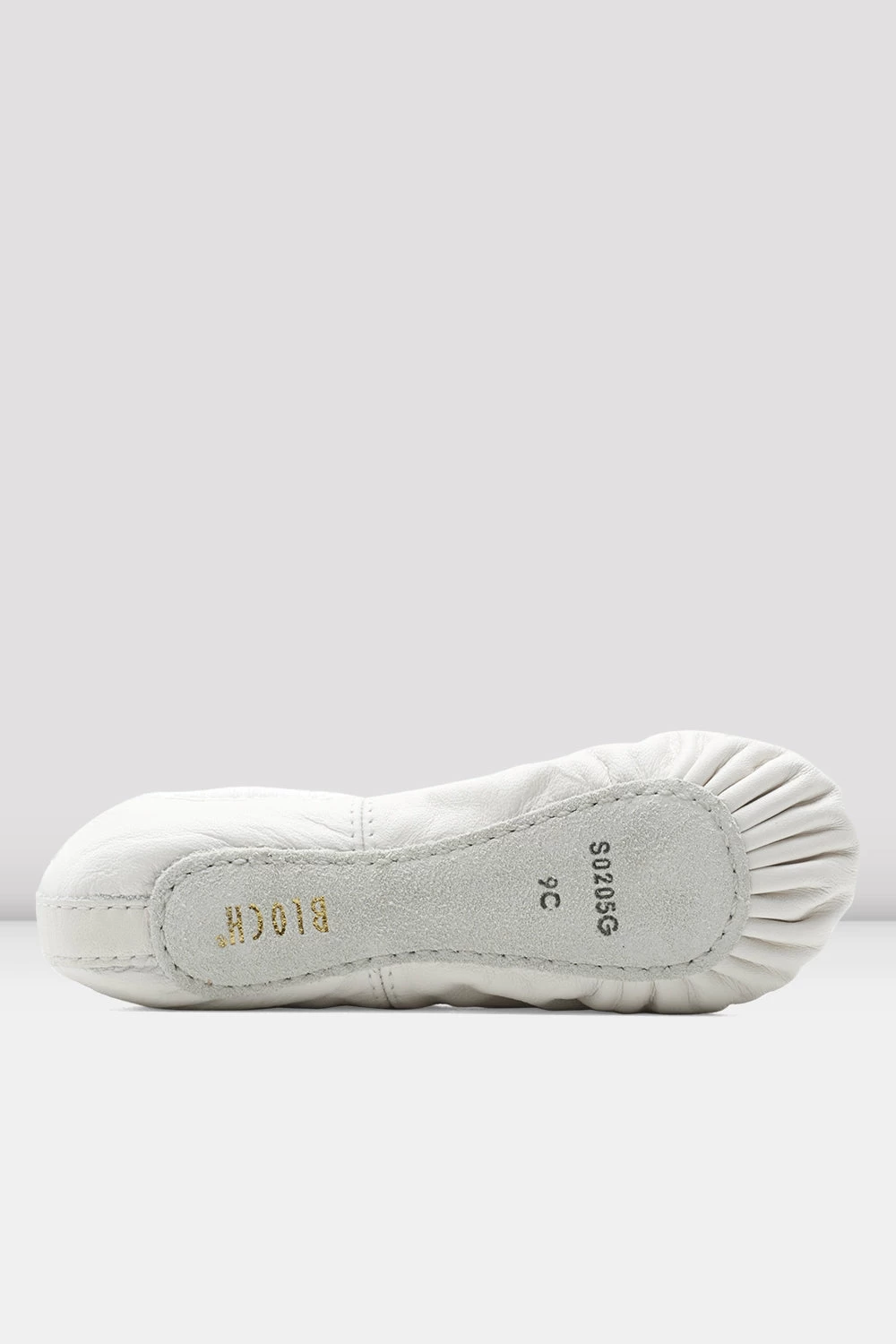 BLOCH best-seller! The Dansoft in toddler sizes is a beautifully classic, introductory leather ballet flat with a tapered toe and full sole. Ideal for the young student as it features a full sole and elastic already attached over the instep for immediate wear. Crafted from BLOCH’s high-performance, luxurious leather.